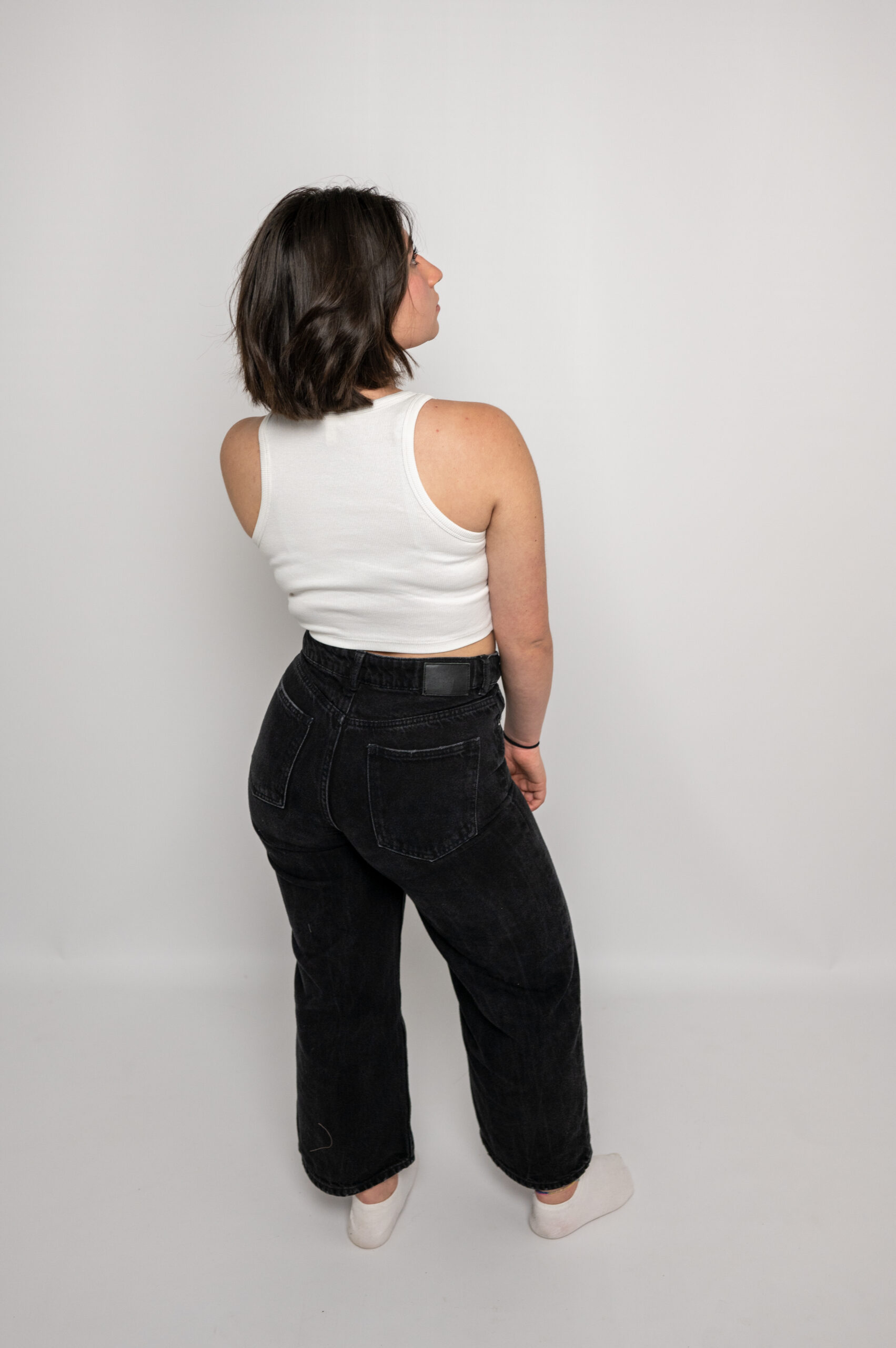 jeans lavaggio nero stile a palazzo, versatili e comodi